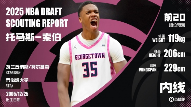 为了突出与众不同,我会选托马斯-索伯在第15顺位被雷霆队选中,这个选择对雷霆队来说非常合理。之前认为他们可能会进行向上交易,但他们只是等待他掉到了这个顺位。雷霆队做出这个选择是着眼于长远,考虑到当杰伦-威廉姆斯和切特-霍姆格伦的第二份合同将在明年开始生效,届时留住首发中锋以赛亚-哈尔滕施泰因可能会很棘手。
