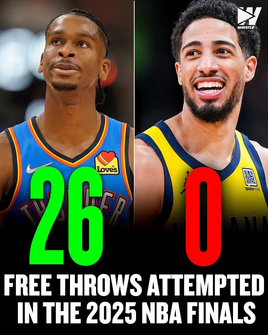 总决赛三场SGA罚球26次 哈利伯顿一次都没有